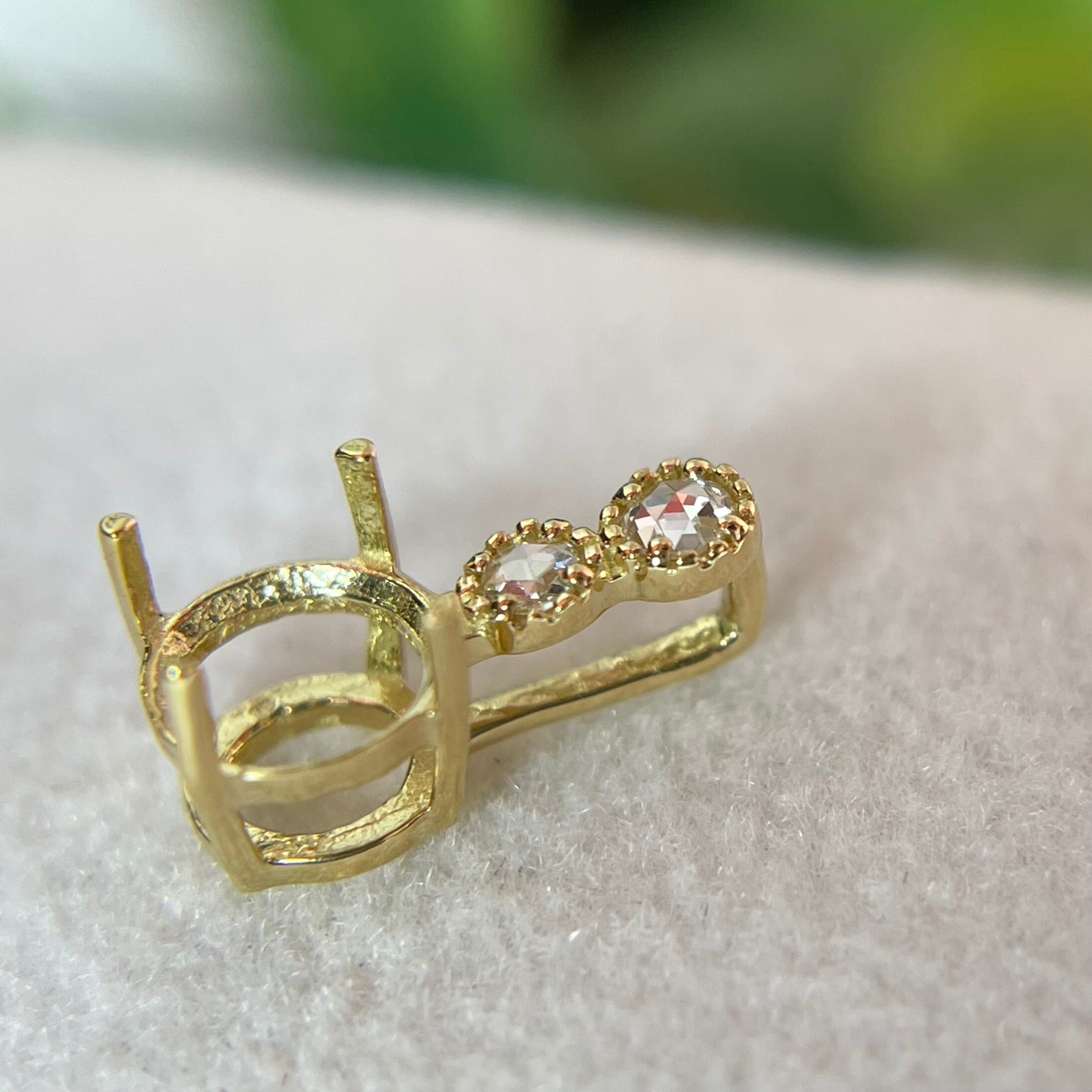 ミル打ちが施された枠にローズカットダイヤモンドが柔らかく煌めくペンダントトップ枠✨