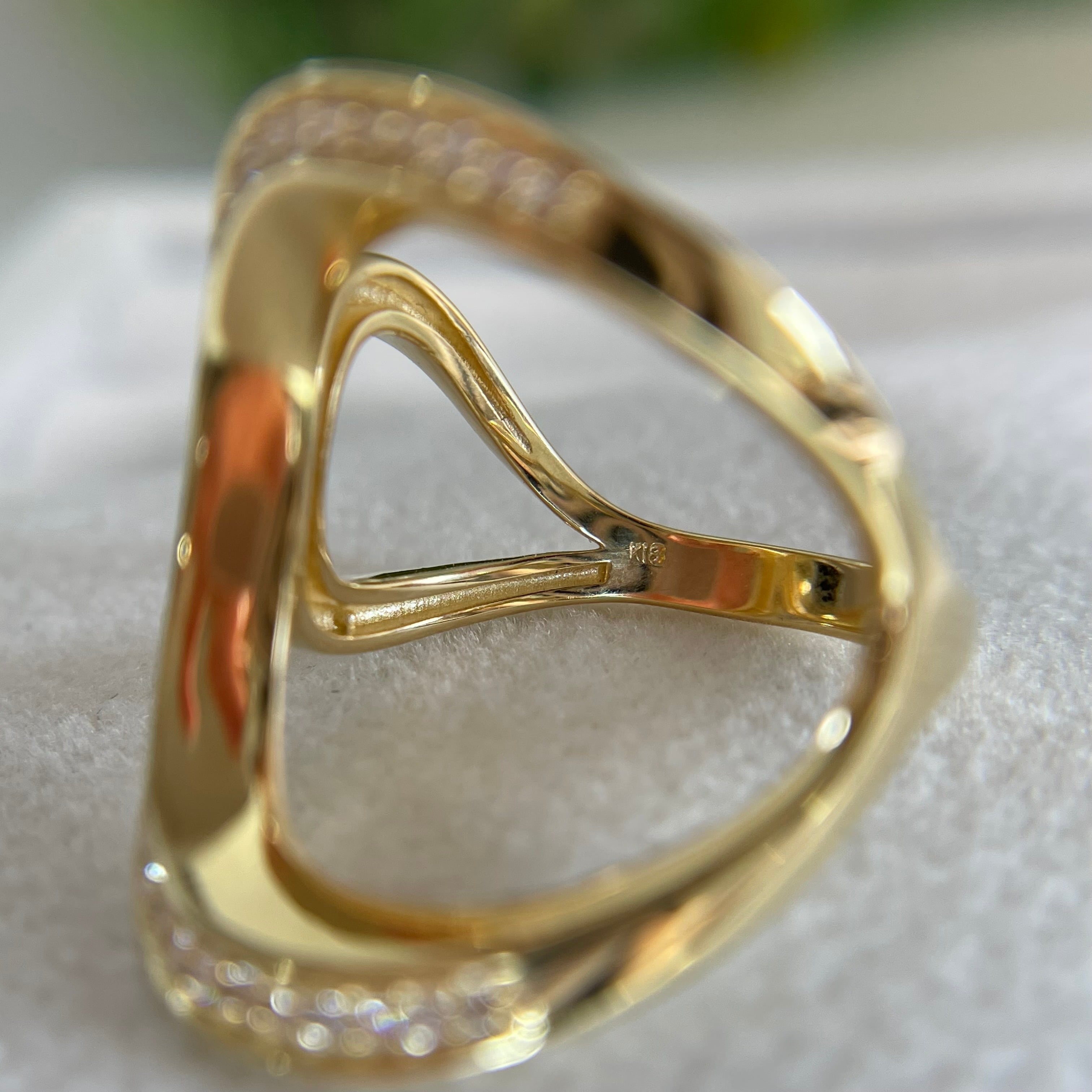 イエローゴールドの艶めきとダイヤモンドの煌めき、ボリュームがありつつも抜け感が重く感じさせないオシャレなリングです。