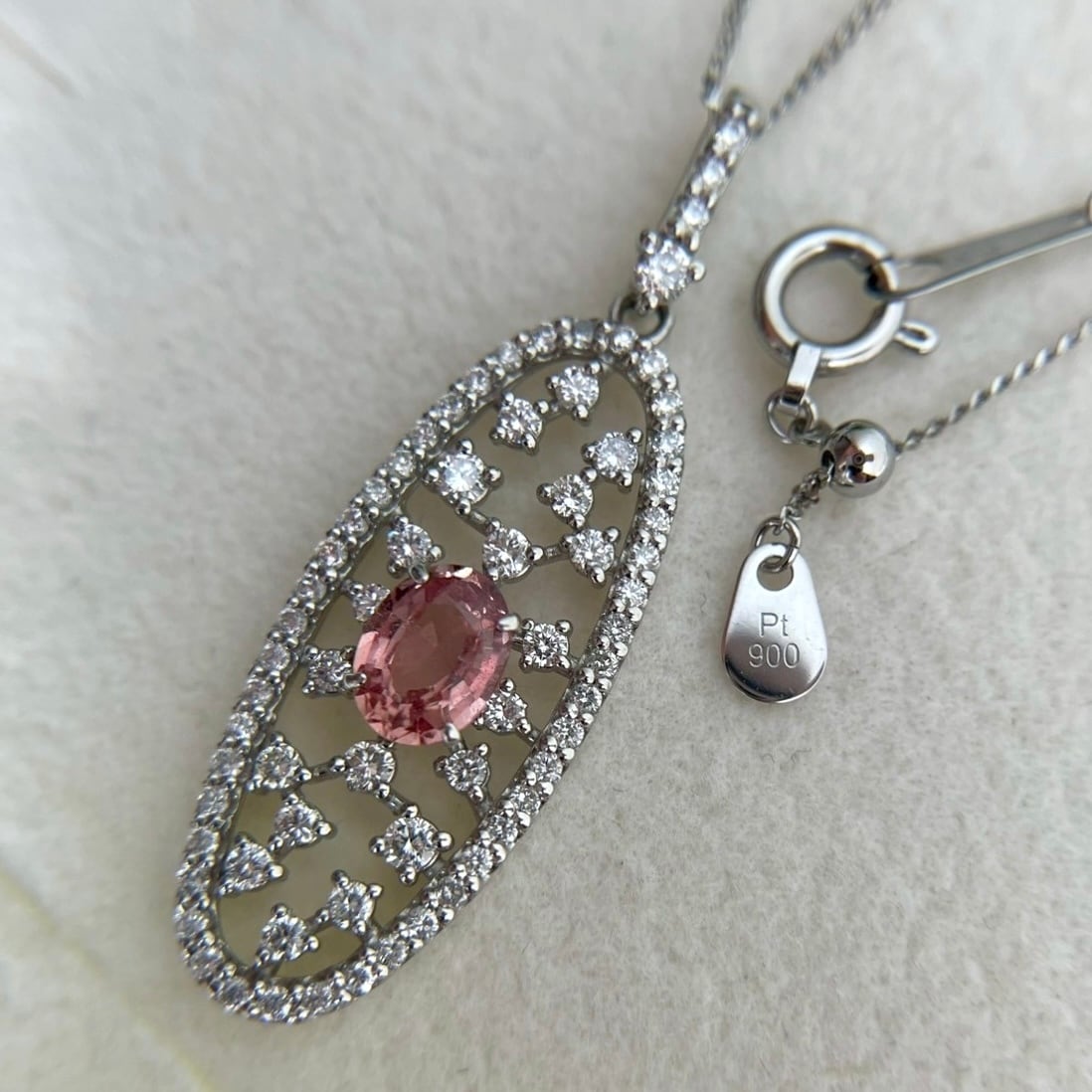 優しいオレンジピンクのパパラチアサファイアが胸元を華やかに彩るネックレス!