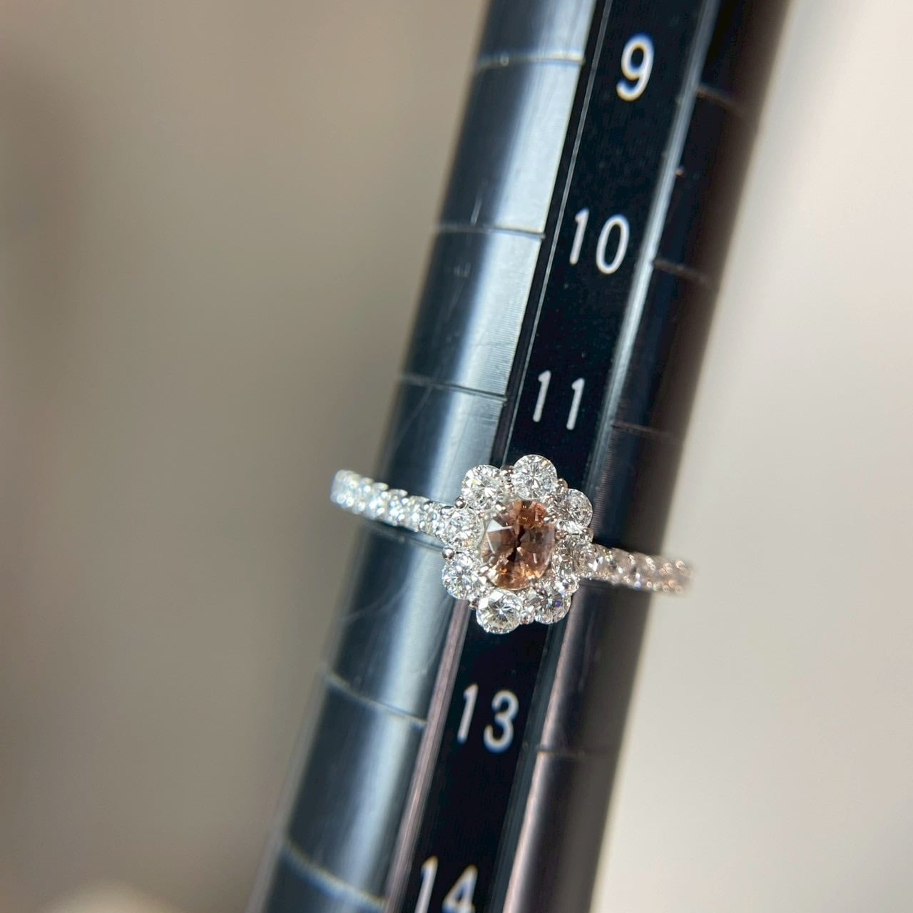 ダイヤモンドの取巻きデザインで仕立てられたリングです。