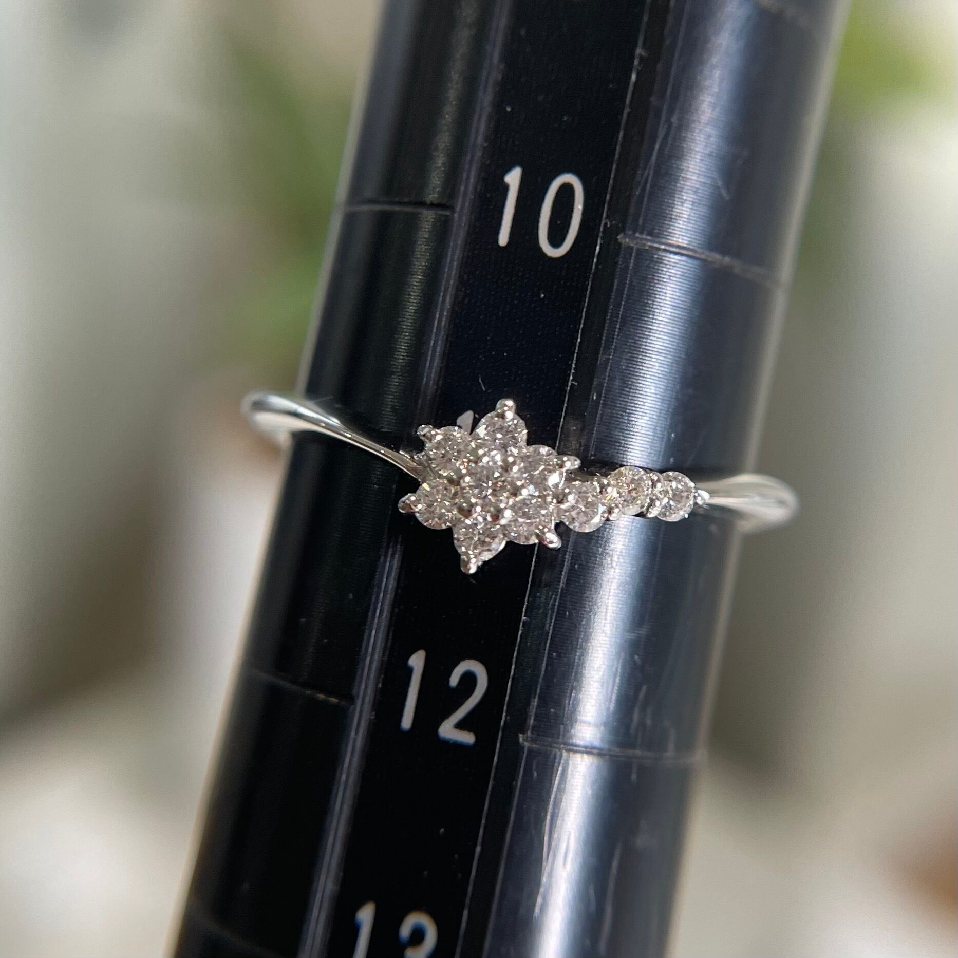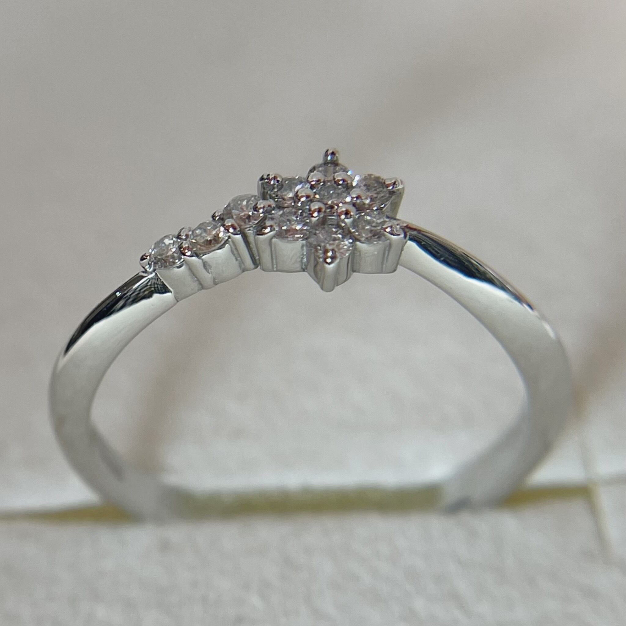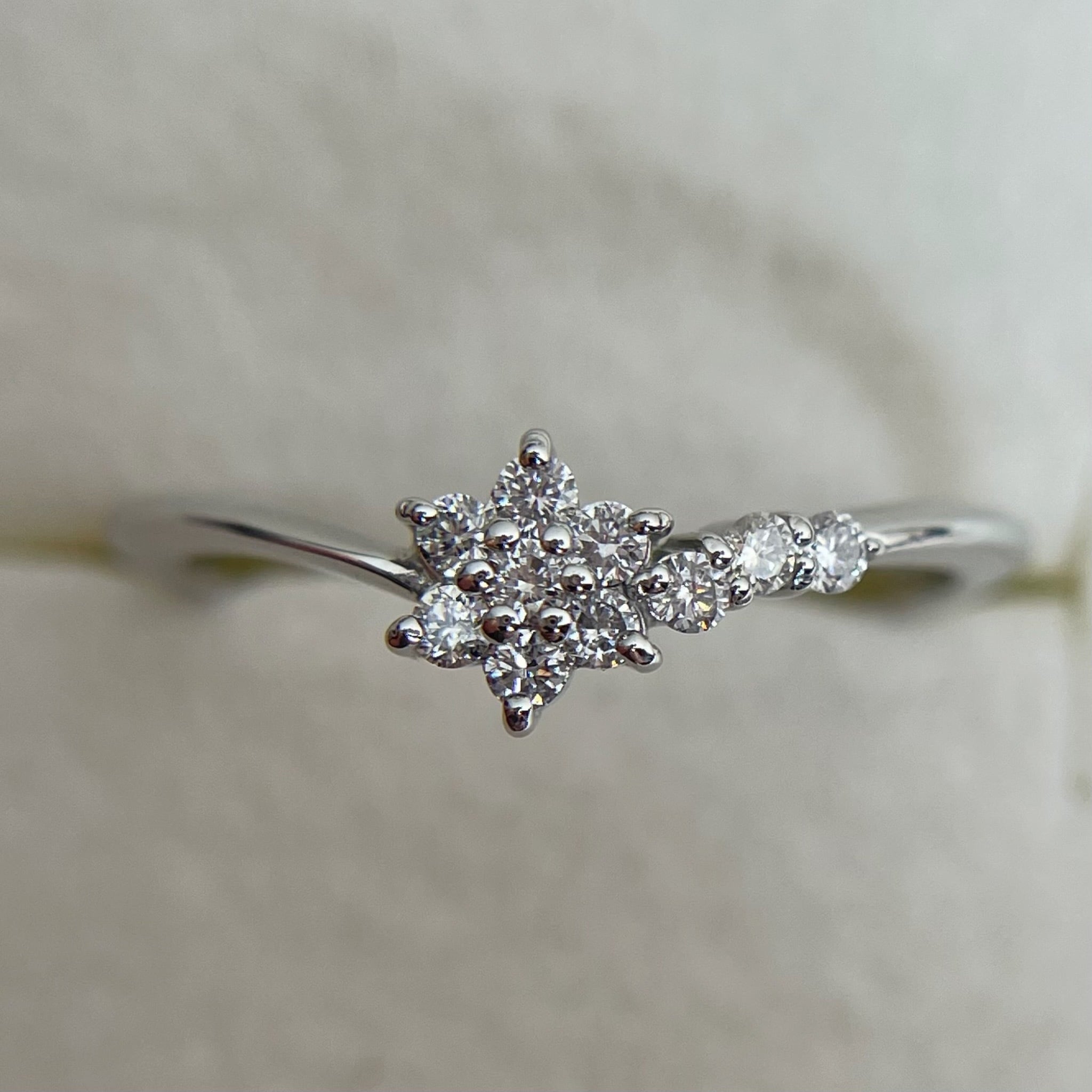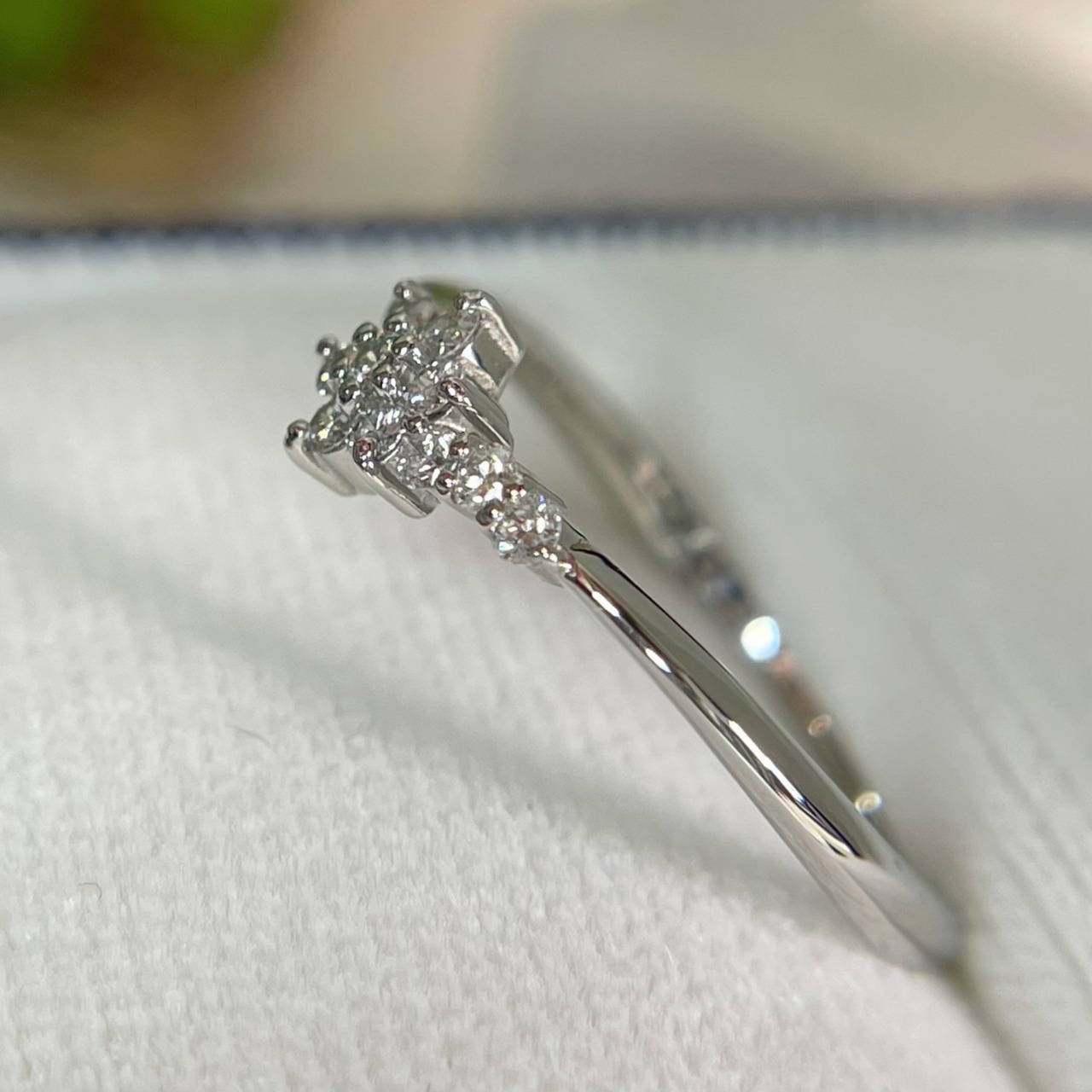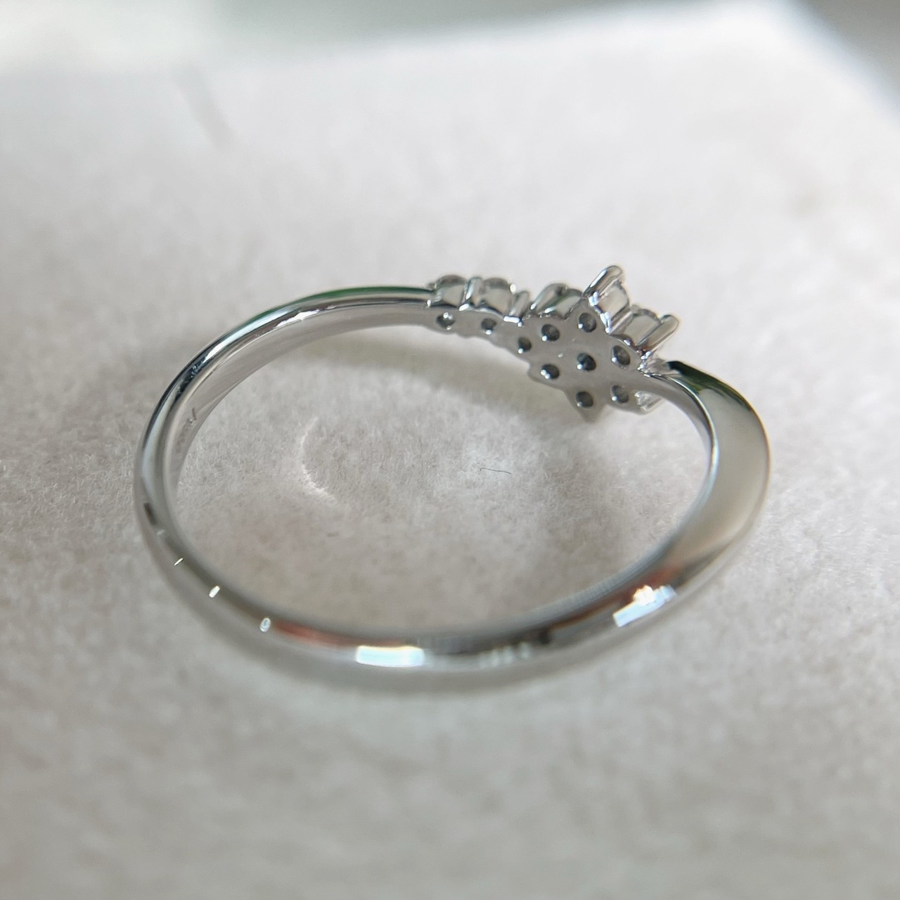 緩やかなVラインにダイヤモンドが煌めくリング。