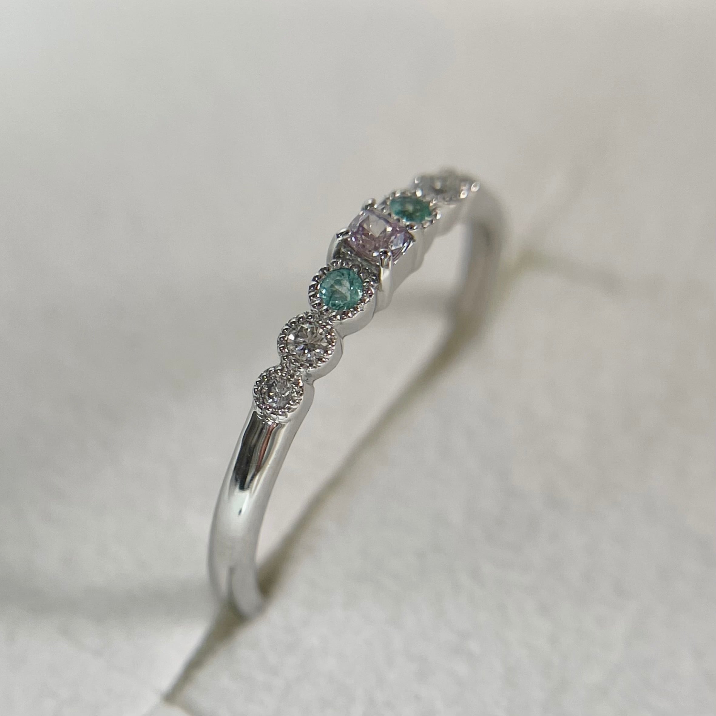 しっかり色味を感じられるファンシーパープルピンクとパライバトルマリンです。
