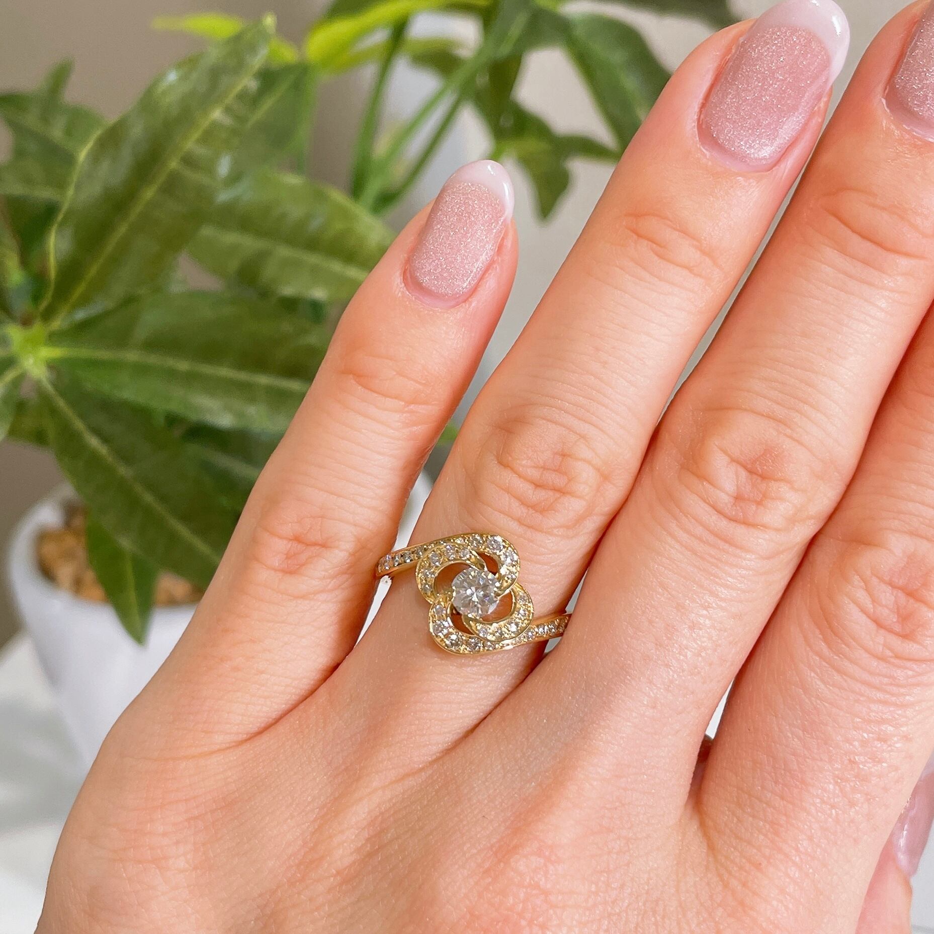 センターのダイヤモンドは0.3ctアップと煌めきをしっかり楽しめる大きさです!グレードが取ってあるダイヤモンドでカットグレードもよく眩い光を放ちます。