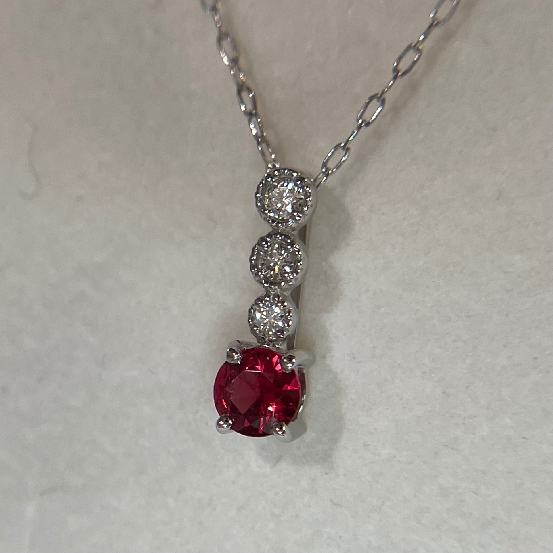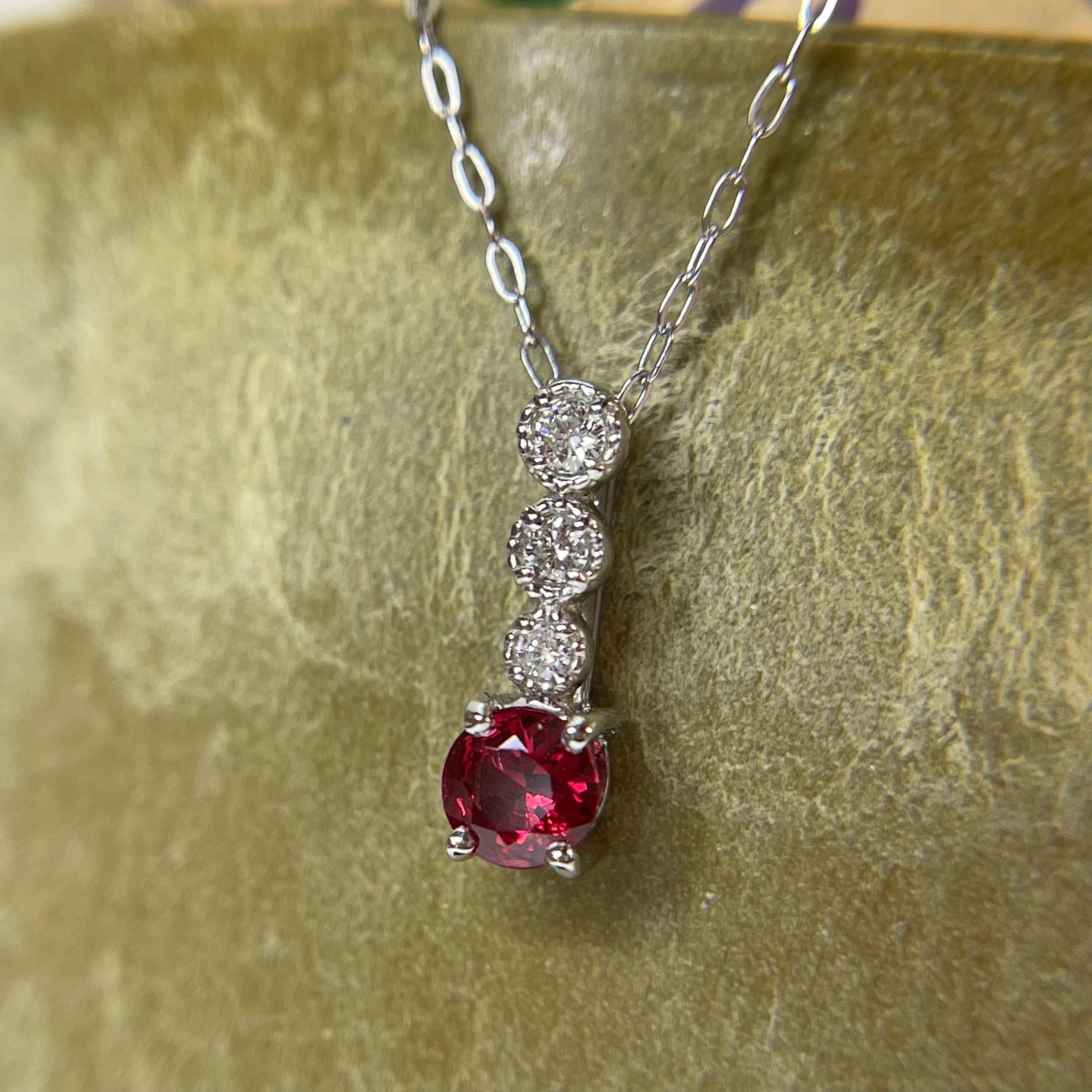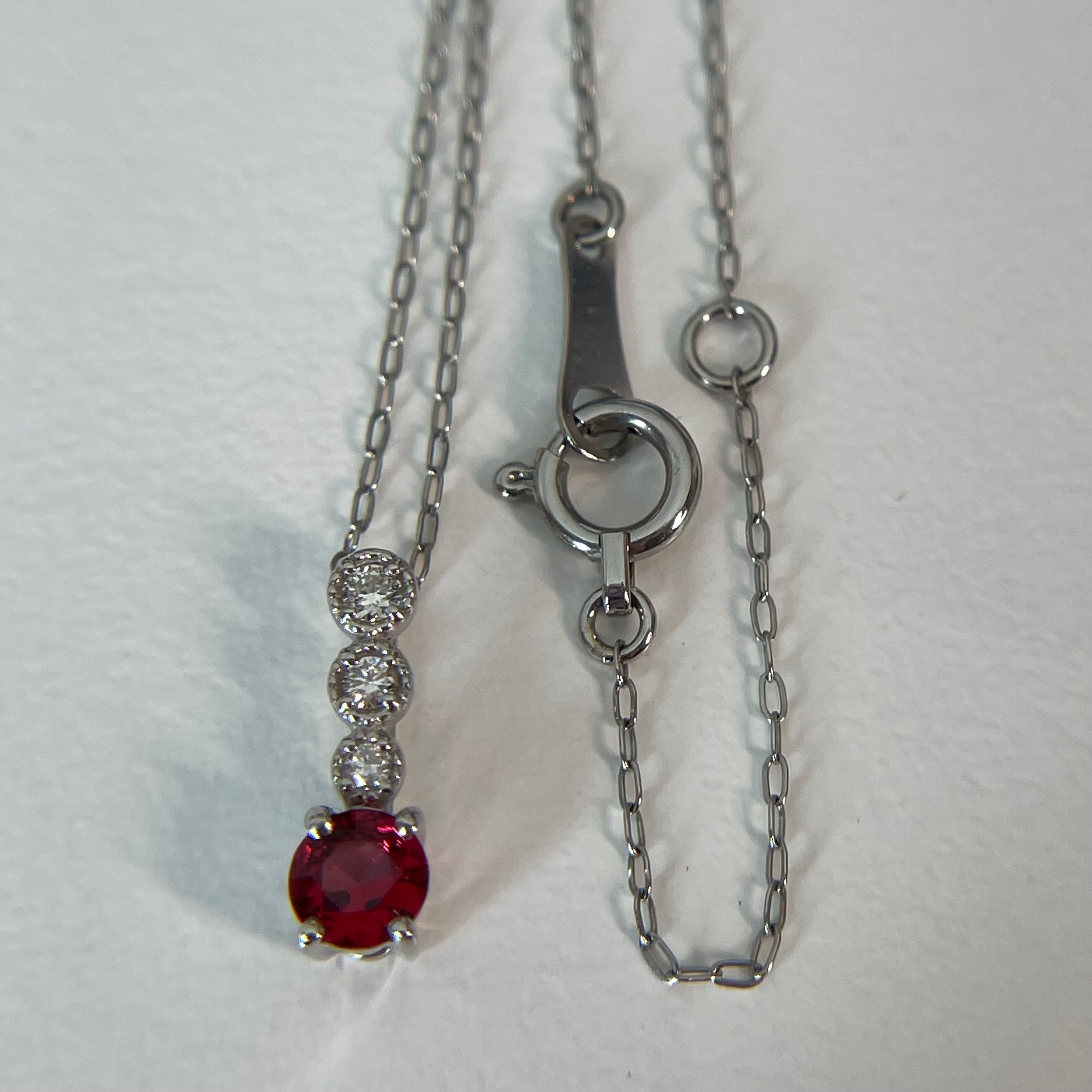 透明感の高い美しい赤の輝き!ピュアなスピネルの彩りが華やかに映えるネックレスです。