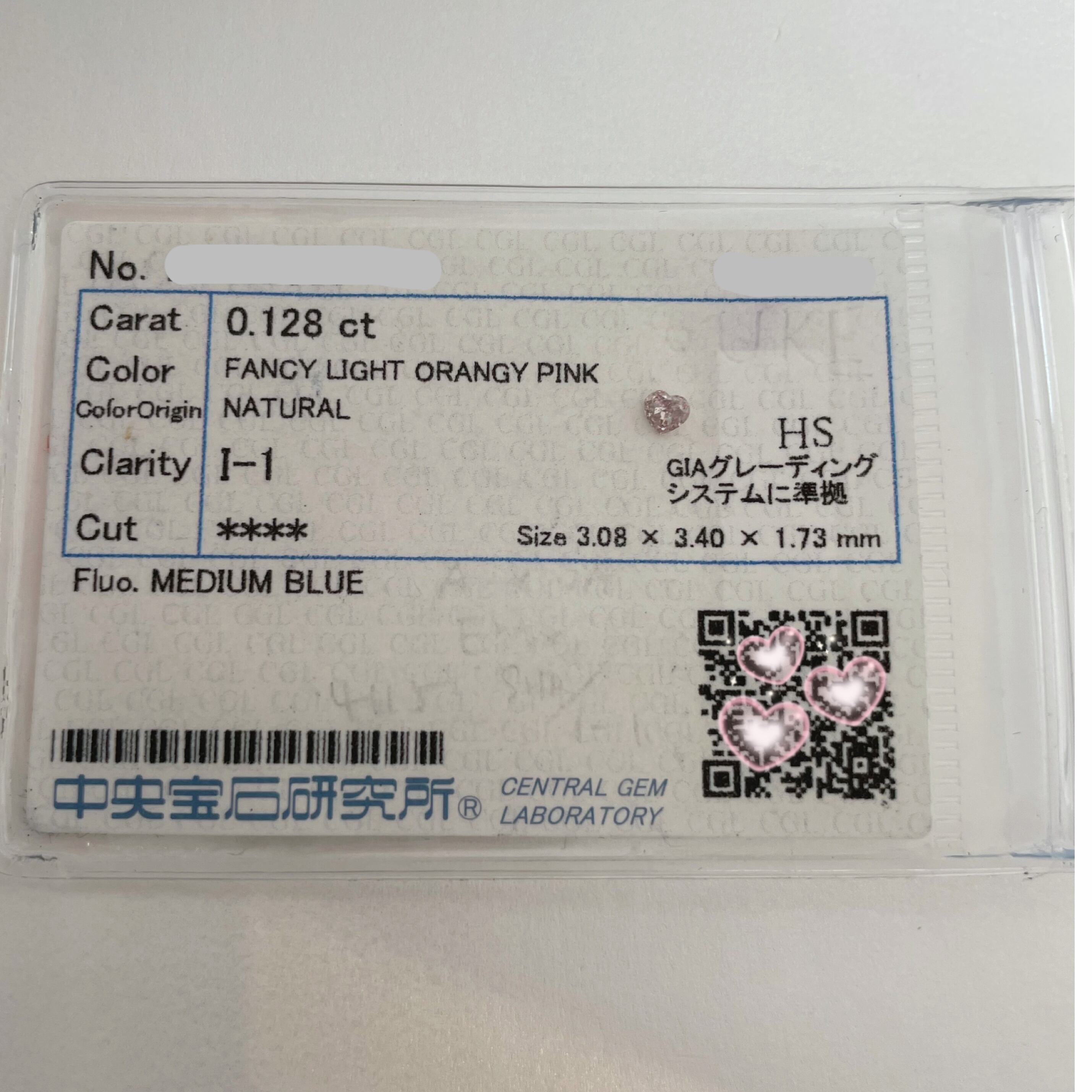 Fancy Light Orange Pink、肉眼でもピンクを感じられるお色味です。