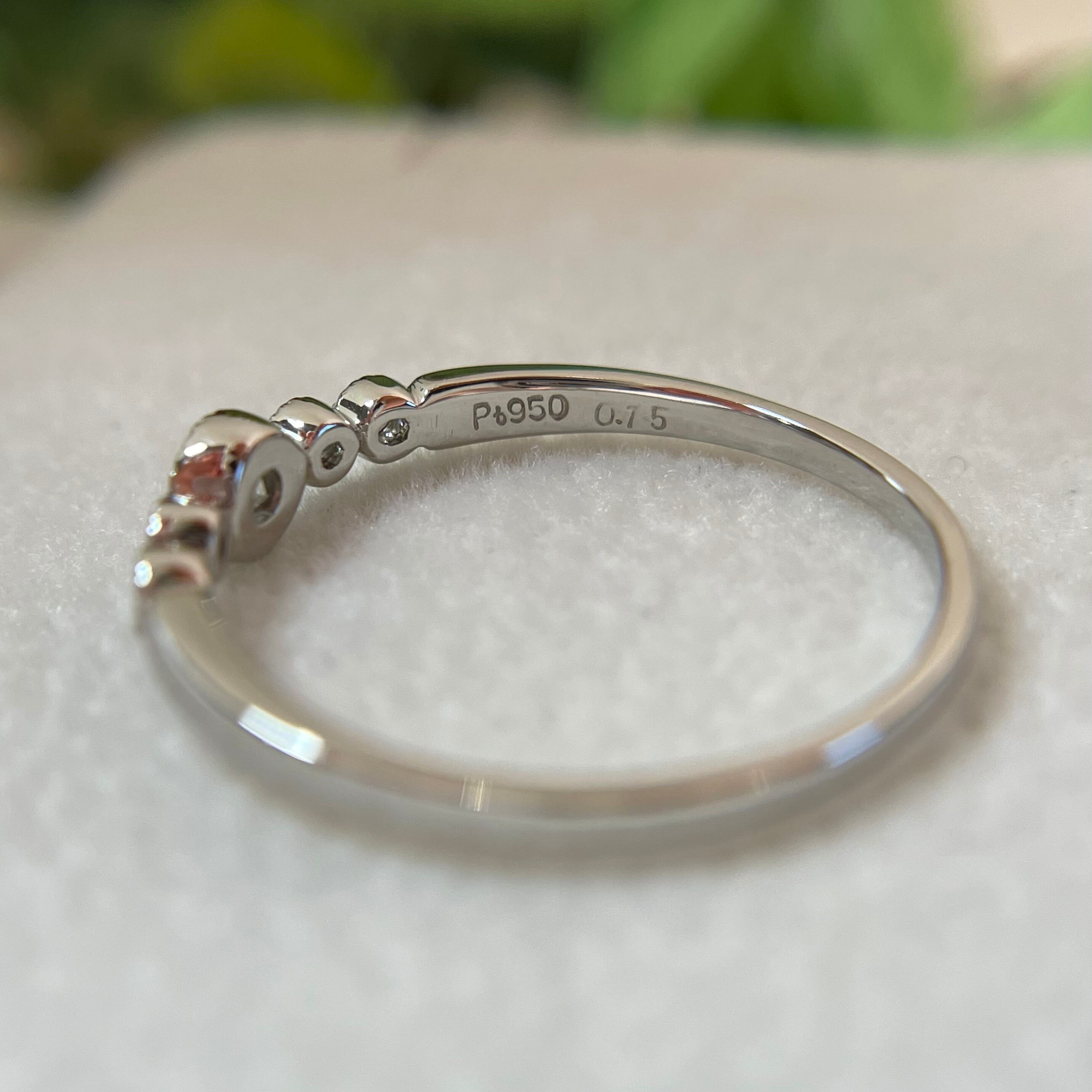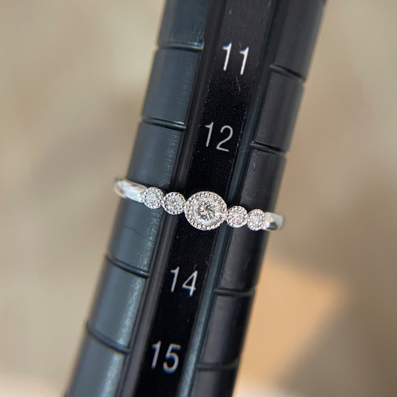 トータル0.15ctと普段使いしやすいボリュームで1本ではもちろん、重ね付けコーデも楽しめるリングです。