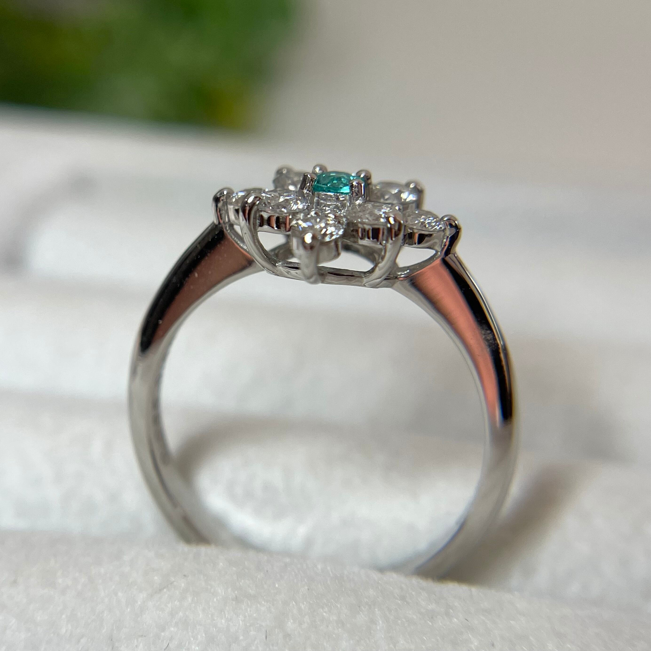 パライバトルマリンの強いネオンとダイヤモンドの輝きが眩しいリングのご紹介です✨